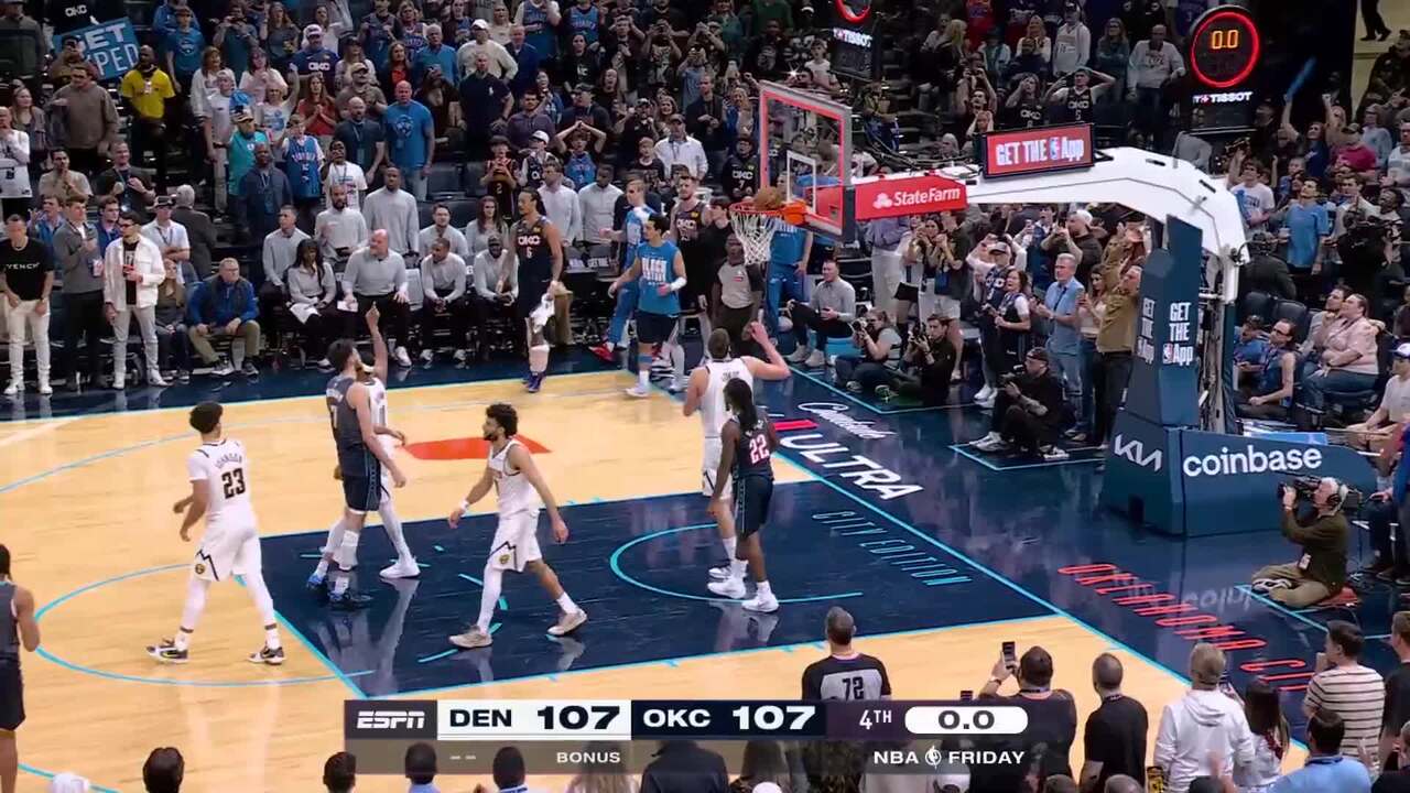 Denver had led the game by as many as 16 points in the first quarter, but OKC came back and triumphed despite Gilgeous-Alexander missing all of overtime due to a minutes restriction. OKC's depth ended up being the difference, with players like Williams, Alex Caruso and Jared McCain all making key plays over the course of the game.